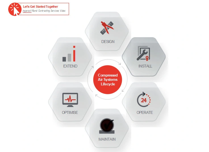 Yrityksesi hyötyy Ingersoll Randin kumppanuudesta laajan kokemuksemme ja maailmanlaajuisen asiantuntemuksemme ansiosta, jotta voimme varmistaa luotettavuuden, alhaisemmat ylläpitokustannukset, helppouden huollettavuuden ja järjestelmän optimoinnin.