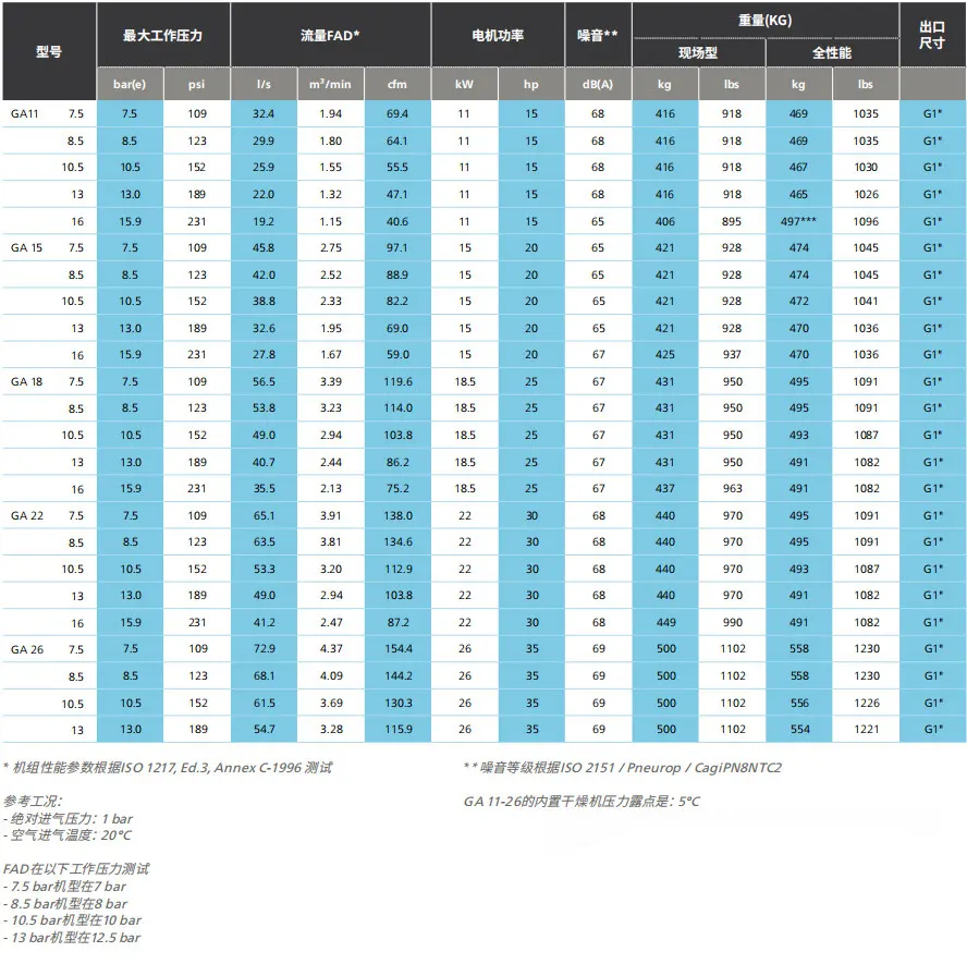 ·GA11-26 ottaa käyttöön uuden roottorin ja tehokkaan IE2/IE3-moottorin, joka on kestävä ja tehokas.