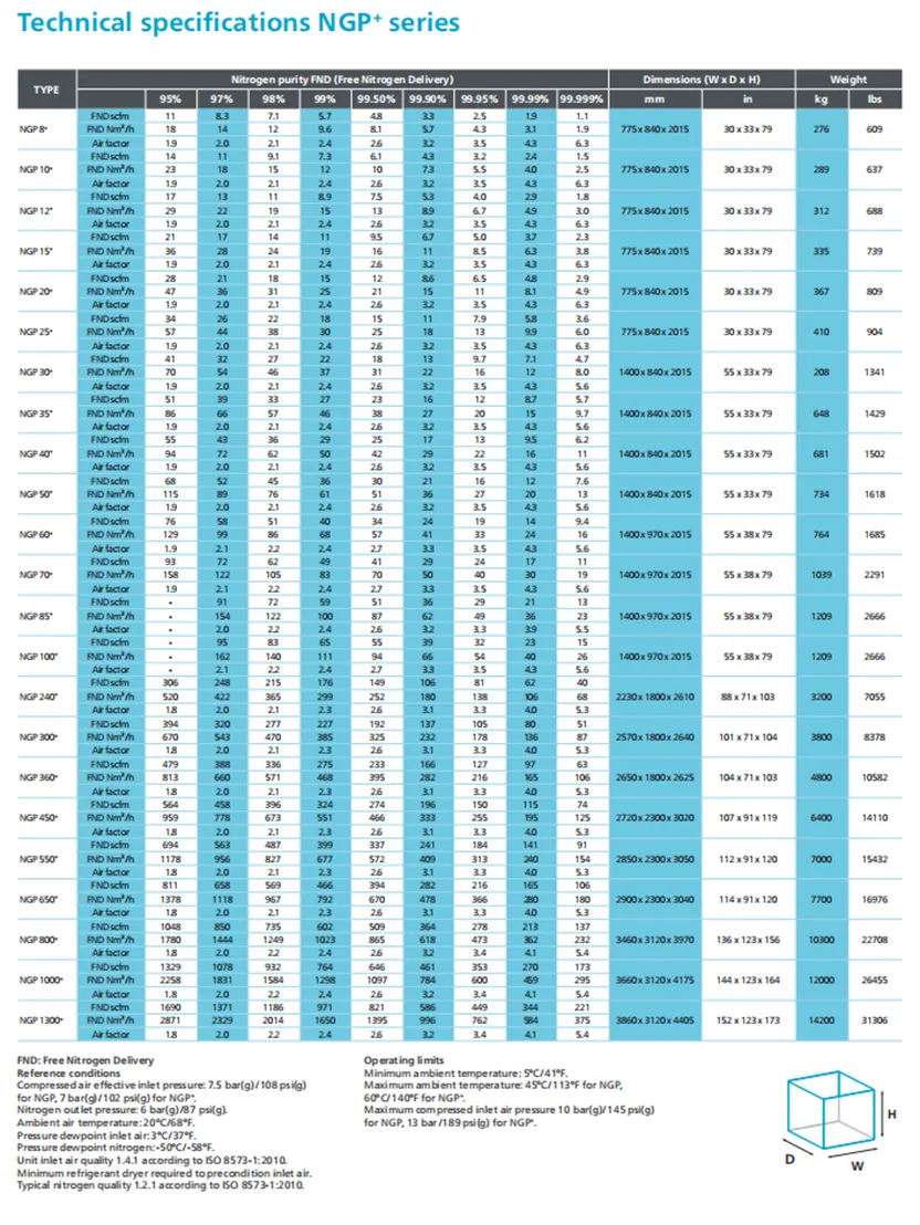NGP Pressure Swing Adsorption Typpigeneraattori tarjoaa 95–99 % typen puhtauden vastaamaan laatuvaatimuksiasi.