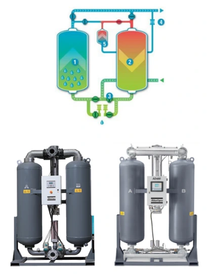 A-sarjan mikrolämmön regeneratiiviset adsorptiokuivaimet käyttävät kuivausainetta kosteuden imemiseen paineilmasta. Jokainen kone koostuu kahdesta identtisestä tornista. Ne vaihtavat toimintoja jokaisen jakson jälkeen.
