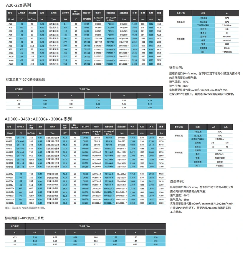 ■ AD-mikrolämpö regeneratiivinen adsorptiokuivain soveltuu keskimääräisiin ilmasovelluksiin.