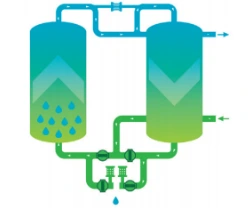 Kun yksi torni on adsorptiotilassa, toinen on regeneraatiotilassa. Regenerointikaasu vaatii tietyn osan valmiista paineilmasta.