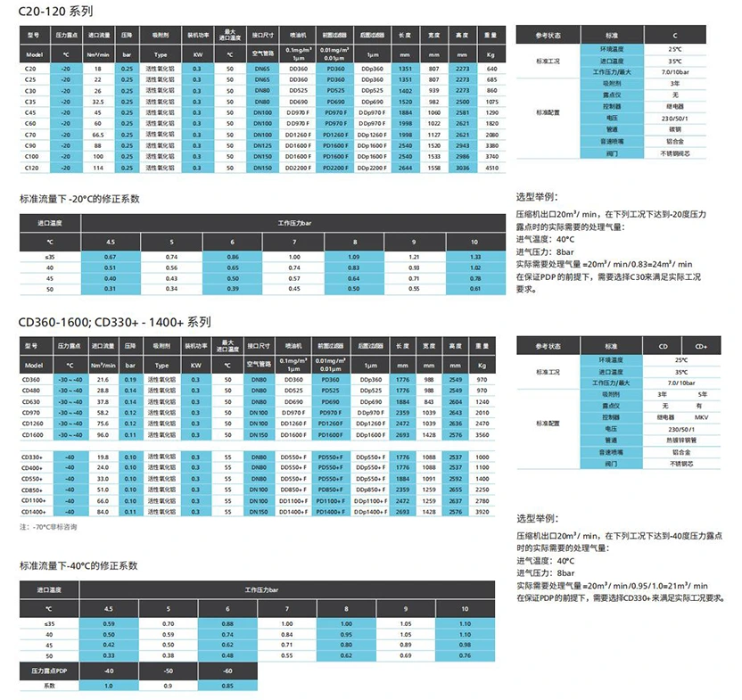 C-sarjan lämmöttömät regeneratiiviset adsorptiokuivaimet käyttävät kuivausainetta kosteuden imemiseen paineilmasta. Jokainen hieman lämmitetty adsorptiokuivainkone koostuu kahdesta identtisestä tornista. Ne vaihtavat toimintoja jokaisen jakson jälkeen.