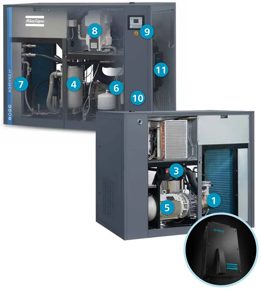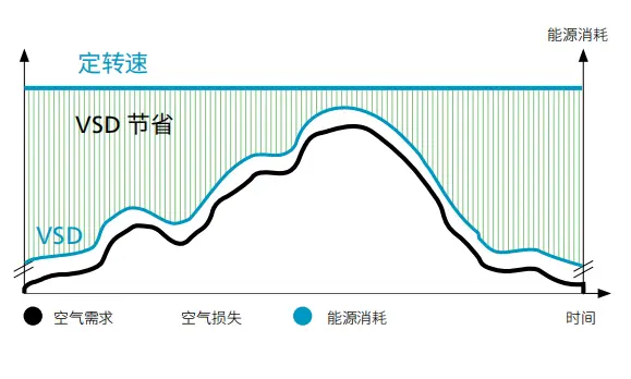 Kompressorin energiankulutus on yli 70 % koko elinkaaren kustannuksista, ja paineilman tuotanto kuluttaa yli 40 % laitoksen sähkölaskusta. Energiankulutuksen vähentämiseksi Atlas Copco kehitti VSD Oil-Free Water-Lubricated Air Compressorin. markkinoilla laaja valikoima VSD-ilmakompressoreita.