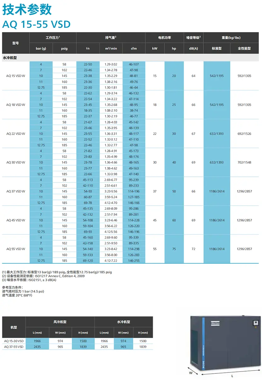 Atlasin öljytön VSD-vesivoideltu ilmakompressori on saanut ISO 8573-1 -luokan SO öljyttömän sertifikaatin, joka täyttää öljyttömän ilman vaatimukset ja saavuttaa erinomaisen energiatehokkuuden. Öljyttömät kompressorimme eliminoivat kaikki mahdolliset öljyn saastumisriskit ja suojaavat aina tuotantosovelluksiasi. Olemme ammattimainen ilmakompressorien valmistaja ja toimittaja Kiinassa. Tervetuloa konsultoimaan ja ostamaan.