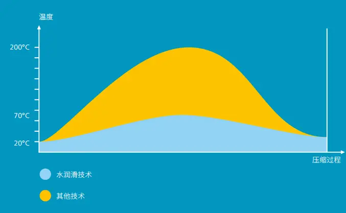 Vedellä on erinomainen jäähdytysteho ja se poistaa tehokkaasti lämpöä lähteestä. Lämmöntuoton aiheuttama energiahukkaa eliminoituu ja paineilmaa voidaan tuottaa enemmän kilowattia energiaa kohden. Viileämpi paineilma vähentää komponenttien lämpörasitusta ja pidentää siten käyttöikää.